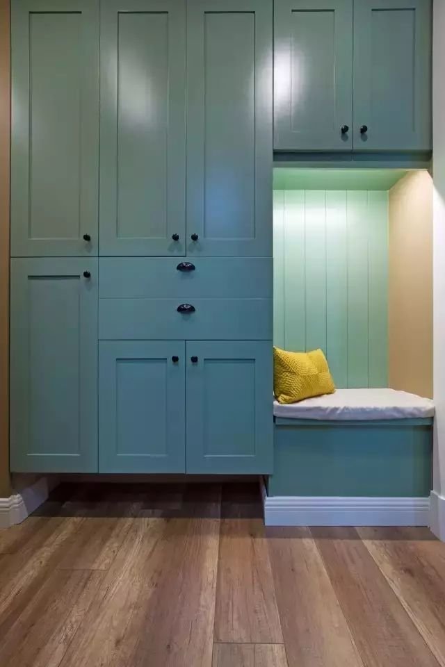 其实鞋柜的款式多种多样,你可以按照自己喜欢的样子来定制,但不管是什么样的鞋柜最好都要具备这两种特质:底部悬空+换鞋凳。