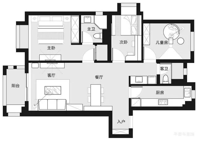 房子的户型还是挺不错的,功能区划分都刚刚好,装修时省力省心。
