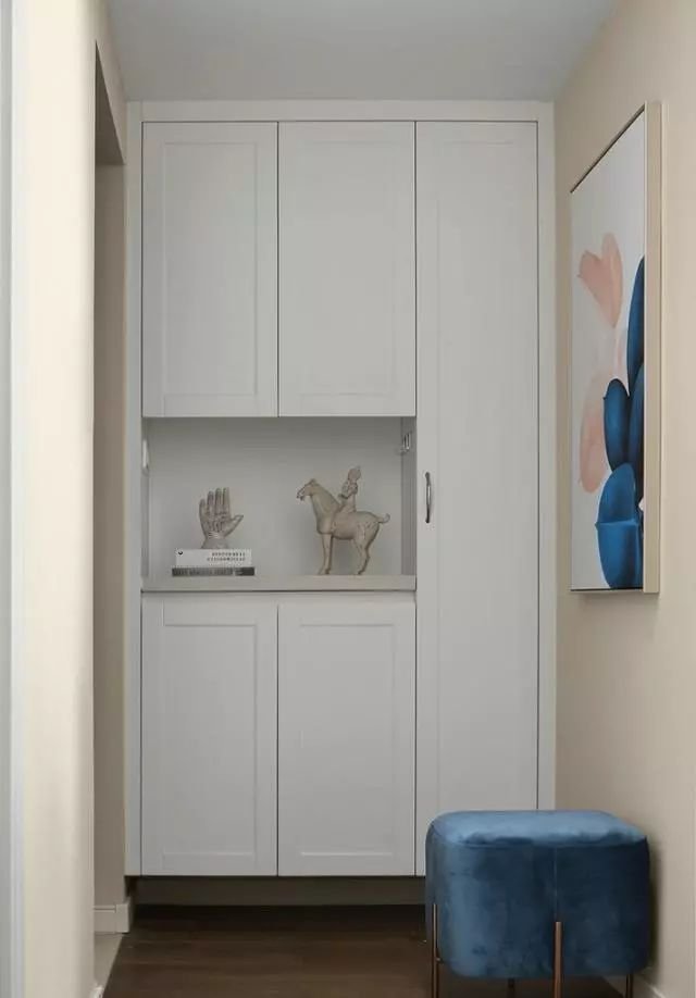 玄关处有个转折,入户门正对着放上装饰画,第一印象还是挺重要的。
