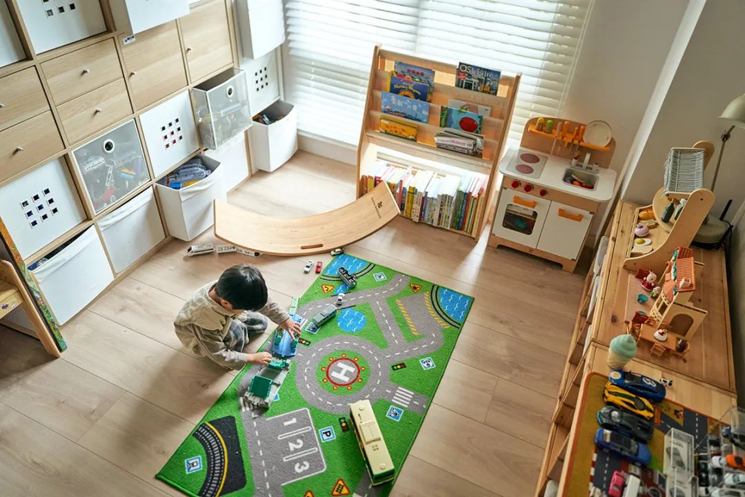 两个孩子都是学龄前儿童,正是爱玩的年龄,所以特意专设一间房间为玩具间,另一间两人同住。