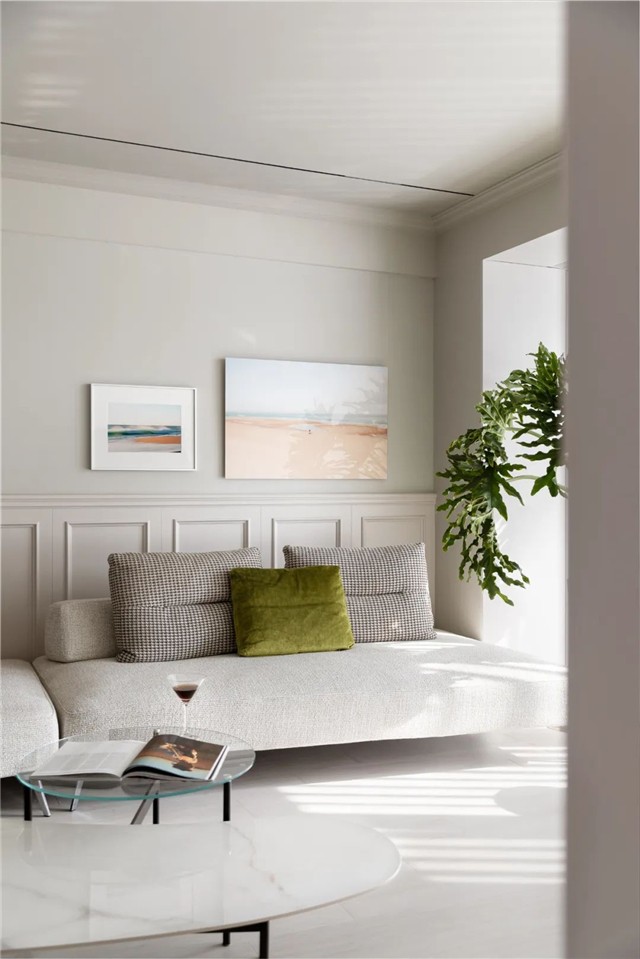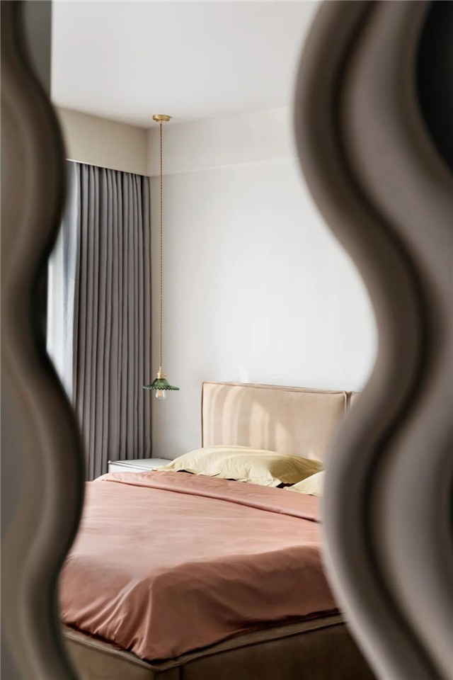 破寻常思维壁垒,改变区隔的存在形式。借以结构穿插替代封闭墙体,既立隔断又得梳妆台,优化统筹空间愈发有兴味。