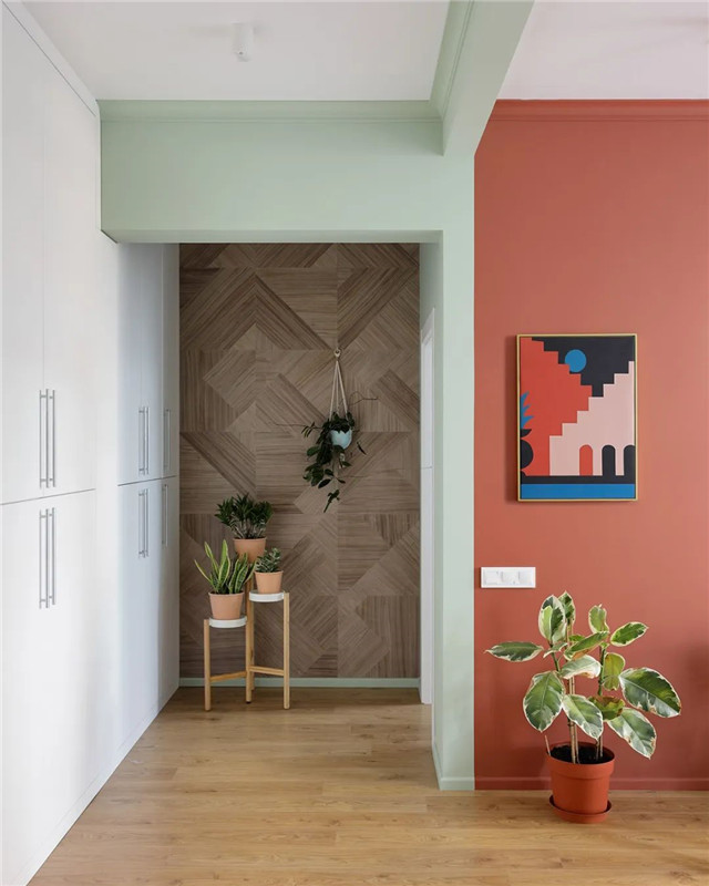 这个诱人的住宅设计有一个紧凑的客厅,充满艺术元素和色彩斑斓的活力。中山帮忙装修网公司分享。