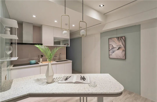屋主自宅的餐厨最大的诉求在于打造一式中岛吧台