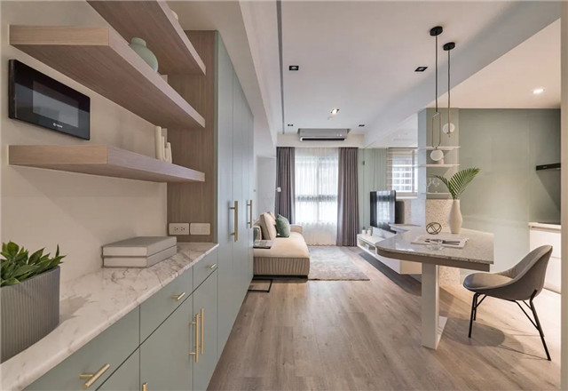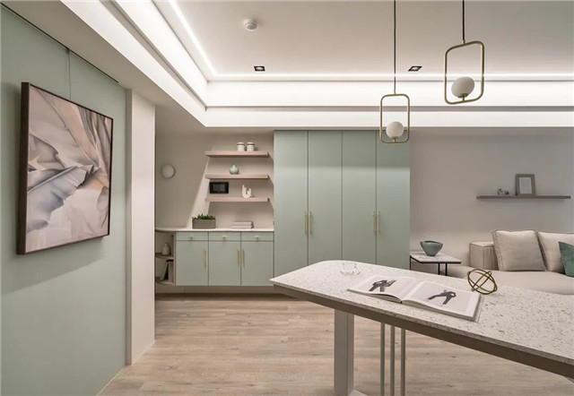 使视线轻巧流动至绿色柜体的端景