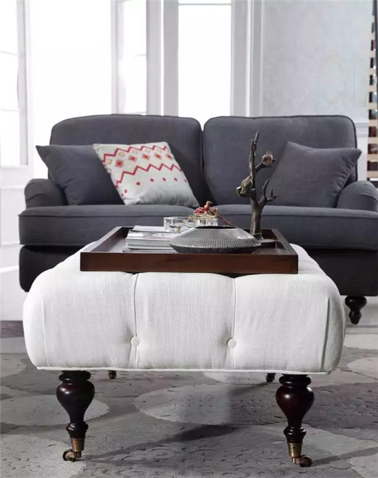 沙发区中的茶几不再是我们常见的原木、亚克力等一系列冷硬的材质,经过布艺软包后的茶几看起来更加具有蓬松感,敦厚的体感增加了给人以温馨的感觉。