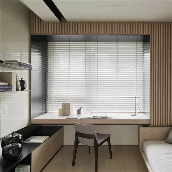 4)窗边遮光帘的安装。因为靠近窗边,难免会有太阳的直射,所以安装透光性强而又不会导致直射的百叶窗是不错的选择。