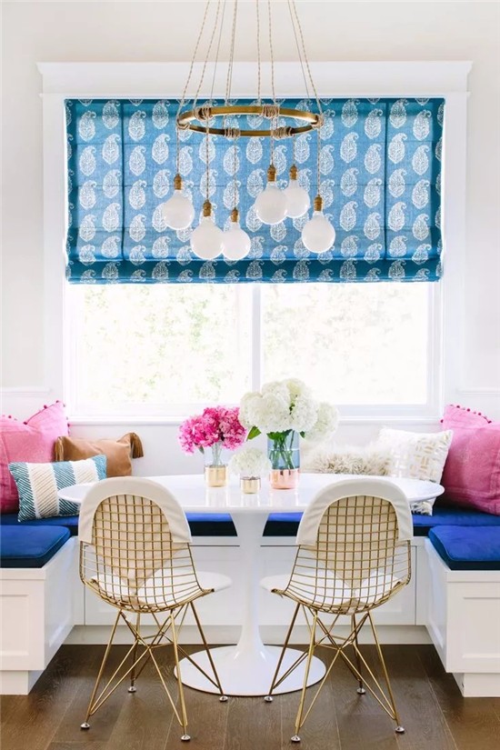 不少户型因为空间受限,餐厅位置被压缩,只能挤在小角落里面。与其这样,不如将窗边改造成卡座餐厅,就着阳光和夜景吃晚餐,最浪漫不过了。